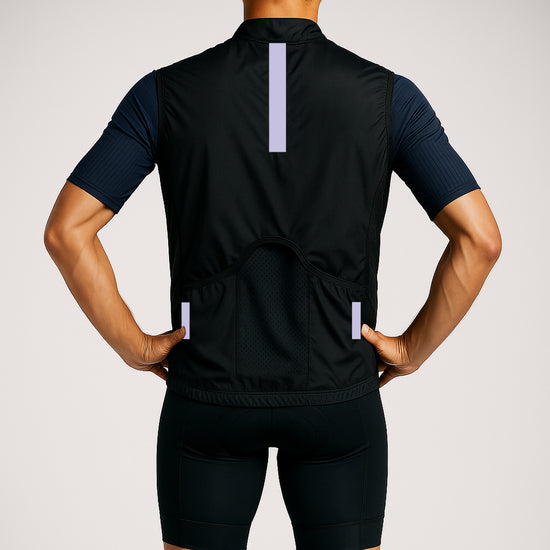 Windproof, water resistant, high-visibility (full reflective logos and trims), super light wind jammer that ticks all the boxes. It features the fun and funky easy-access key-hole pocket system allowing you to reach your jersey's pockets underneath. Thanks to the ultra-light fabric composition, this gilet is compact and can roll up to fit into a back pocket. Versatile and functional garment, essential to every cyclist's wardrobe. Can be worn over summer or winter riding jerseys to protect you from wind chill, cold air and light rain.